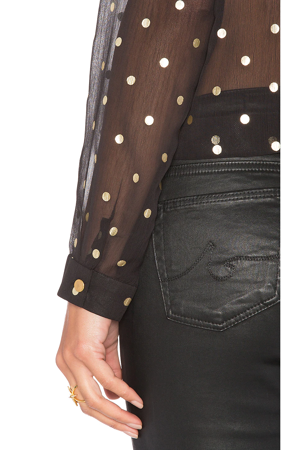 - Bereit für Stimmungsmusik und Liebesgeflüster. Das Whisper Oberteil von Lovers + Friends vermittelt mit seinem ausgeschnittenen Rücken und dem frei fließenden Chiffon-Stoff ein romantisches Gefühl. Das goldene Punktmuster macht es unvergesslich.